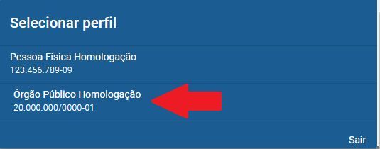 4.1 Após ter sido vinculado, selecione o perfil do Órgão Público para acessar o módulo de correição online,  e outros serviços disponíveis.